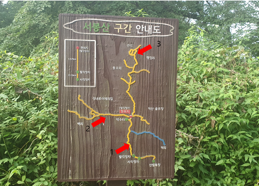 제가 이용하는 코스는 3번 코스 행정리 방면에서 시작하는 코스로 정상까지 대략 3km 정도(?) 이어지는 코스입니다.