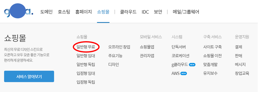 추가로 가*아에서는 무료쇼핑몰을 지원하네요.